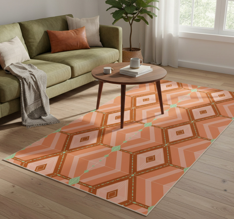 The Geometric vinyl carpet in 30s autumnal colors geometric vinyl carpet is an inspiring choice for anyone looking to elevate their home decor. Its unique design captures the essence of autumn with rich, warm tones that create a cozy and inviting atmosphere. Perfect for living rooms, bedrooms, or any space that needs a touch of elegance, this rug not only serves as a decorative element but also as a functional piece that enhances your home's overall aesthetic!