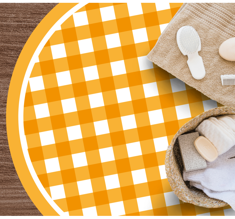 Reference: R19703A vibrant, warm checkered pattern features alternating orange and white squares, creating a playful yet comforting effect. The design is circular, bordered with a solid orange outline, contributing to a cheerful visual that stands out.