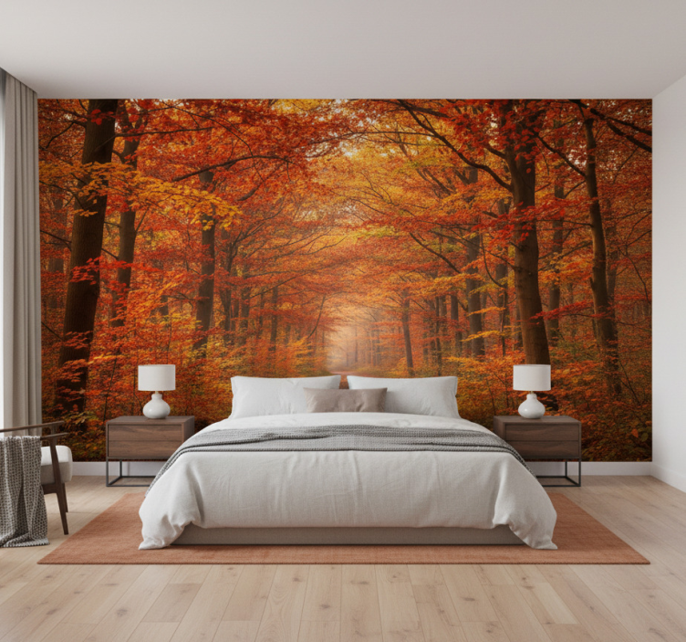 The Forest wall mural autumn tree path forest wall mural is not just a decorative piece; it is an invitation to escape into nature. Imagine walking through a peaceful forest every time you enter your room. This mural enhances the ambiance, making it the perfect choice for those who seek tranquility and inspiration in their living spaces. Let the beauty of this mural inspire your creativity and bring joy to your home!