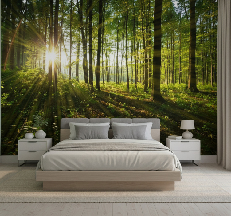 The Forest wall mural golden sunburst woods forest wall mural is an ideal decorative piece for anyone looking to elevate their space. Its vibrant colors and stunning imagery create a serene environment that inspires relaxation and creativity. Imagine walking into a room where the beauty of nature surrounds you, fostering a sense of peace and tranquility. This mural serves as a stunning focal point, making it perfect for living rooms, bedrooms, or any space where you desire a touch of the outdoors!
