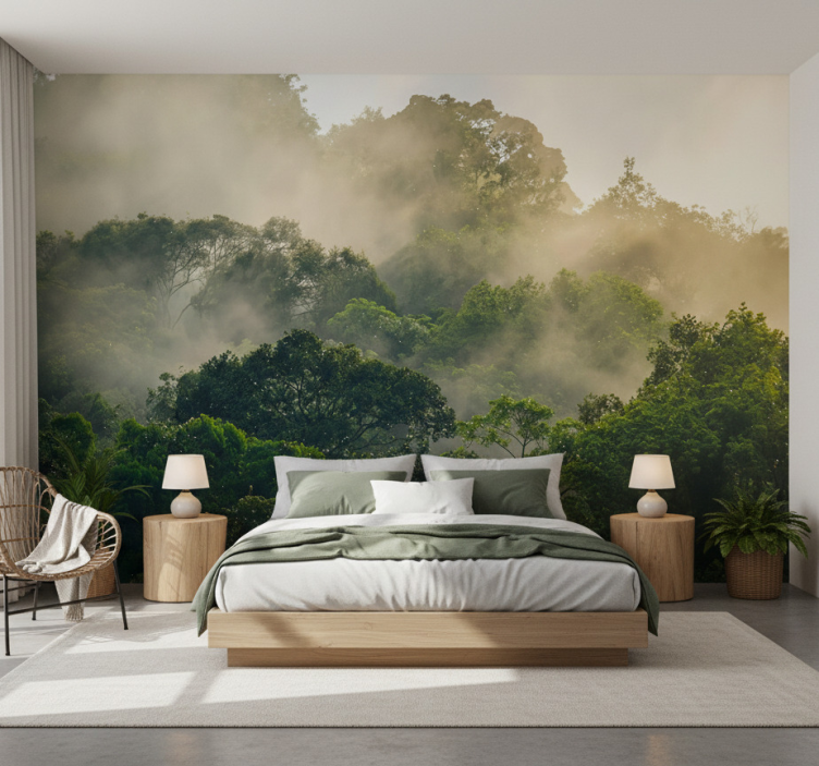 The Forest wall mural lush jungle canopy forest wall mural brings an enchanting atmosphere to any room, inspiring relaxation and creativity. It serves as a captivating focal point, inviting nature indoors and transforming your living space into a vibrant oasis. Whether in your living room, bedroom, or office, this mural will energize your environment, making it a perfect choice for those looking to elevate their décor.