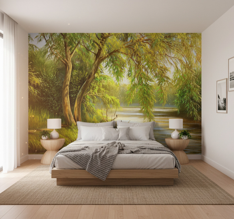 The Forest wall mural serene river willow forest wall mural is not just a decorative piece; it is an invitation to bring the outdoors inside. Imagine waking up to the calming sight of a peaceful river and majestic willows, inspiring relaxation and creativity in your daily life. This mural effortlessly enhances your interior design, creating a serene backdrop that captivates the eye and soothes the soul!