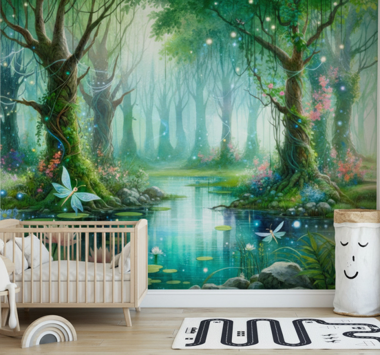 Reference: F11950Transform your space with our enchanting Forest wall mural whimsical fairy design, where vibrant creatures frolic amidst lush greenery. This stunning mural showcases a magical forest teeming with whimsical fairies, detailed flora, and captivating colors that breathe life into any room. Crafted with matt colours, it promises a soft touch that enhances the overall aesthetic of your decor.