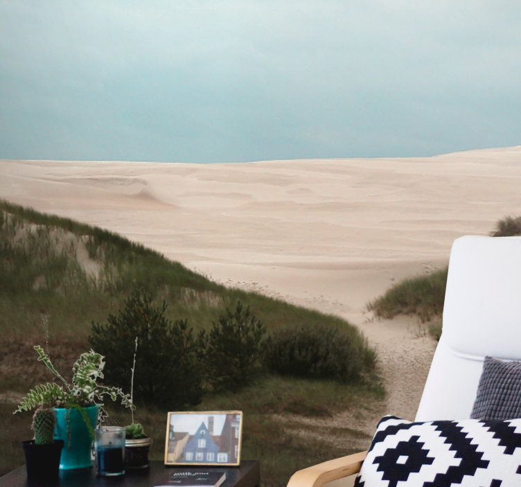 Transform your space with the stunning Landscape wall mural sandy dune path. This design captures the essence of nature, featuring a serene path winding through magnificent dunes, kissed by soft sands under a vast, open sky. The tranquil scenery invites you to escape into a world of calmness and beauty, making it a perfect addition to any room!