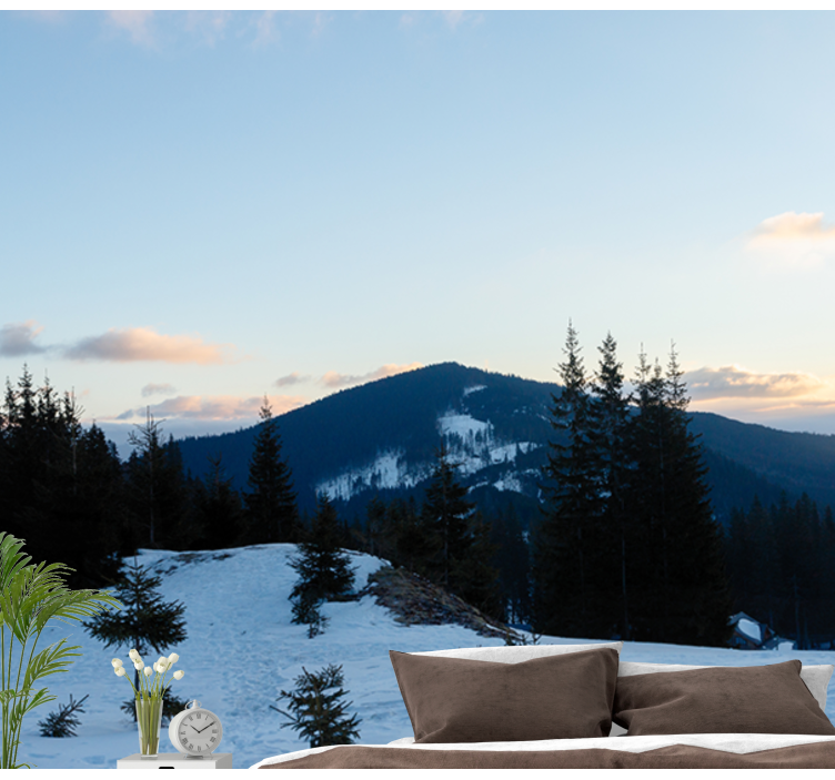 Embrace the beauty of nature with the Mountain wall mural frosty summit landscape mountain wall mural! This mural is not just a decoration; it's a source of inspiration that enhances your living space. The tranquil imagery of snowy peaks and serene trees instills a sense of calm and wonder, inviting the great outdoors into your home. Perfect for living rooms, bedrooms, or offices, this mural will uplift any environment and create a cozy atmosphere you will cherish for years to come.