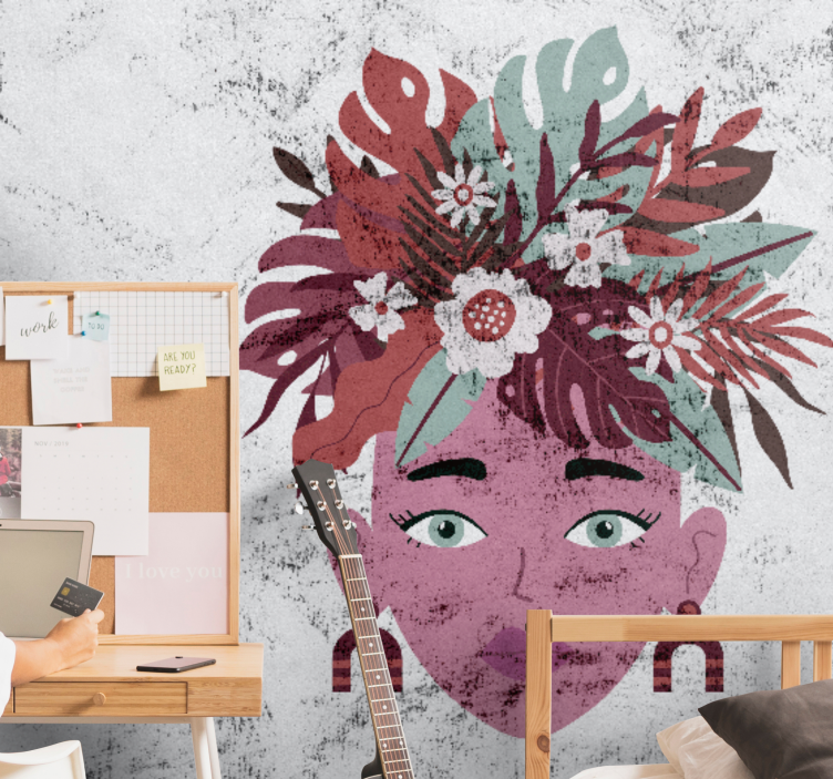 The Wall mural people stylized floral head wall mural people is more than just a decoration; it is a statement piece that inspires creativity and warmth in your home. Its enchanting design invites joy and positivity, making it perfect for living rooms, bedrooms, or creative spaces. The vibrant floral elements resonate with nature's beauty, creating a harmonious atmosphere that uplifts your spirit. Let this mural be the centerpiece that sparks conversations and admiration!