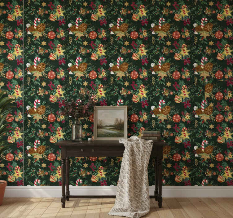 Reference: P12271Transform your hallway into a festive wonderland with our Hallway wallpaper with festive candy designs. This delightful design features vibrant, eye-catching candy motifs that bring joy and a playful spirit to any space. Its matt colours and non-woven material create a charming yet sophisticated atmosphere, making it perfect for those who wish to add a touch of whimsy to their decor.