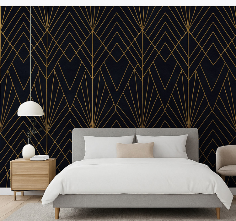 Master bedroom wallpaper dark blue with gold patterns