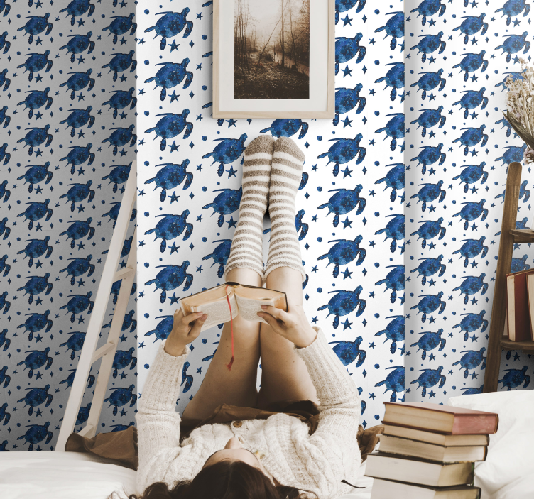 Looking for a colorful and original way to personalize your child's bedroom walls? Look no further than this stunning animal wallpaper featuring adorable turtles with a galaxy-style pattern on a white background. Your child is sure to love it! Our high-quality kids' bedroom wallpaper is specially designed to prevent air bubbles, wrinkles, and other problems during application. Plus, you can order our accessory kit, which includes all the tools you need to put it up on the wall. Add some excitement to your child's room with this amazing turtle wallpaper today!